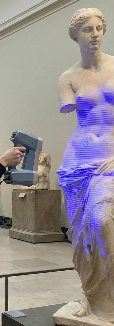 3D-Scanning mit Laser, Strukturlicht/LiDAR und Photogrammetrie erzeugt präzise digitale Zwillinge von Objekten, Kunstwerken und Räumen.